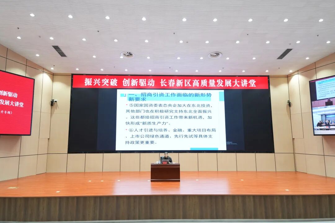 12月14日,为进一步落实省委和市委关于全面振兴率先实现新突破工作部署,加快构建“1310”高质量发展格局和培育“311X”现代化产业体系,切实承担起永春现代生物医药城和北湖未来科学城“双城”建设的重大使命,长春新区举办第五期“振兴突破 创新驱动”高质量发展大讲堂,以实际行动落实省、市委全会精神,加快推动高质量发展。长春新区管委会主任徐勇参加活动。长春新区党工委副书记李广明主持活动。
