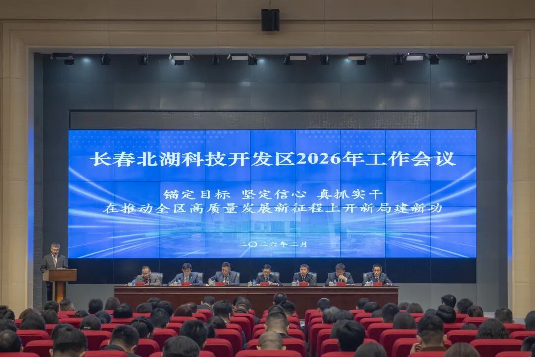 2月28日,长春新区北湖开发区召开2026年工作会议,全面贯彻落实中央、省、市及长春新区各项决策部署,系统总结2025年及“十四五”时期发展成就,部署安排未来五年特别是2026年重点任务,动员全区上下锚定目标、坚定信心、真抓实干,在推动全区高质量发展新征程上开新局、建新功。长春新区北湖开发区党工委书记吕东出席会议并讲话,长春新区北湖开发区党工委副书记、管委会主任薛井龙主持会议。