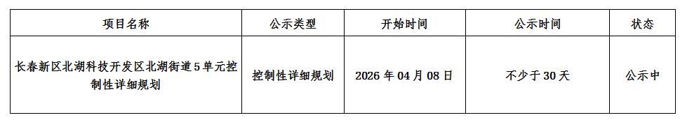 长春新区北湖科技开发区北湖街道5单元控制性详细规划公示