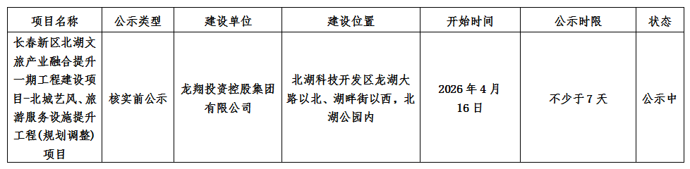 长春新区北湖文旅产业融合提升一期工程建设项目-北城艺风、旅游服务设施提升工程(规划调整)项目