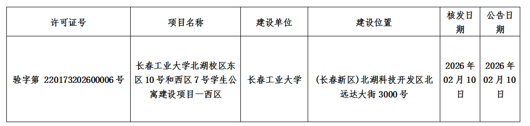 长春工业大学北湖校区东区10号和西区7号学生公寓建设项目一西区批后公告