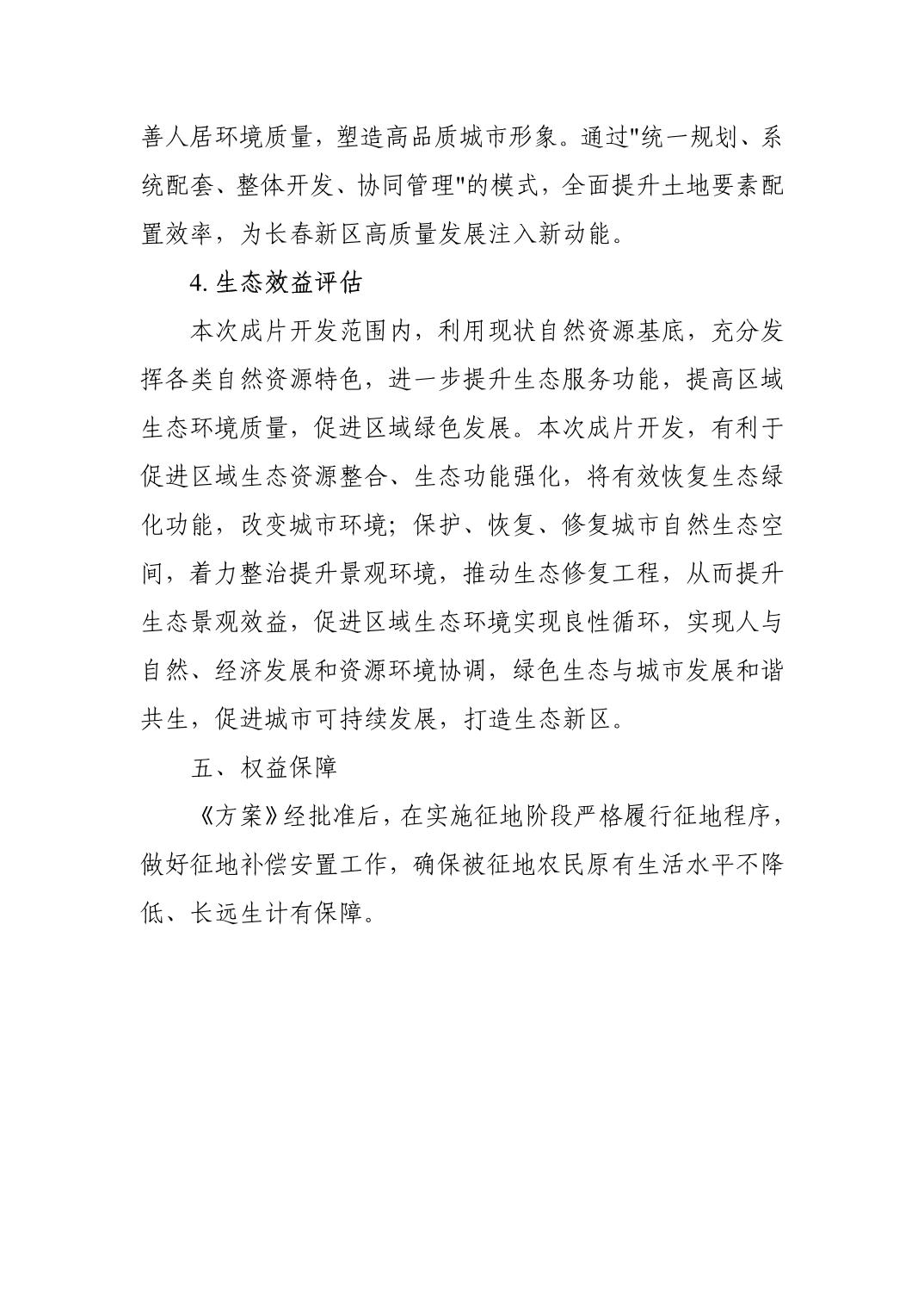 按照《中华人民共和国土地管理法》(2019年修正)《土地征收成片开发标准》(自然资规〔2023〕7号)《吉林省土地征收成片开发方案编制报批细则》(吉自然资办发〔2024〕313号)等法律法规的相关规定,长春新区管理委员会组织编制了《长春新区2021年土地征收成片开发方案调整方案(第二轮)》。现将方案主要内容进行公示,向社会广泛征求意见。在公示期间,公众可通过以下途径和方式提出反馈意见。