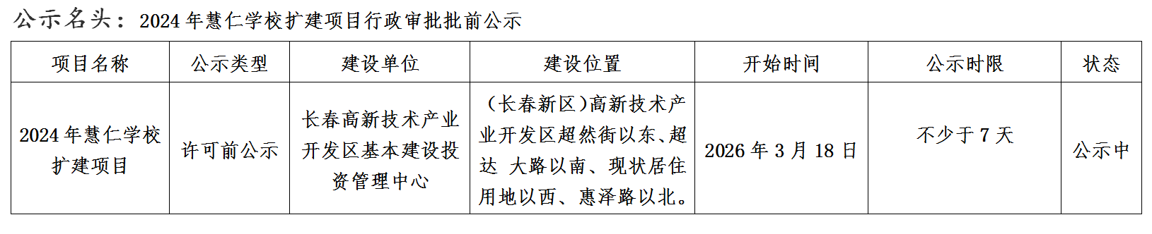 2024年慧仁学校扩建项目行政审批批前公示