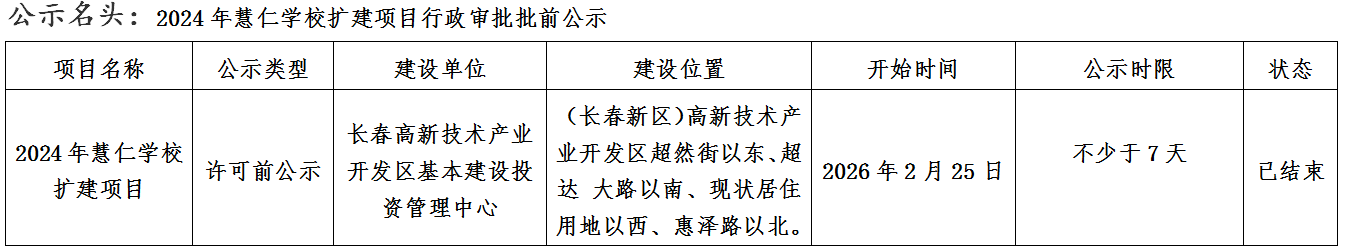 2024年慧仁学校扩建项目行政审批批前公示