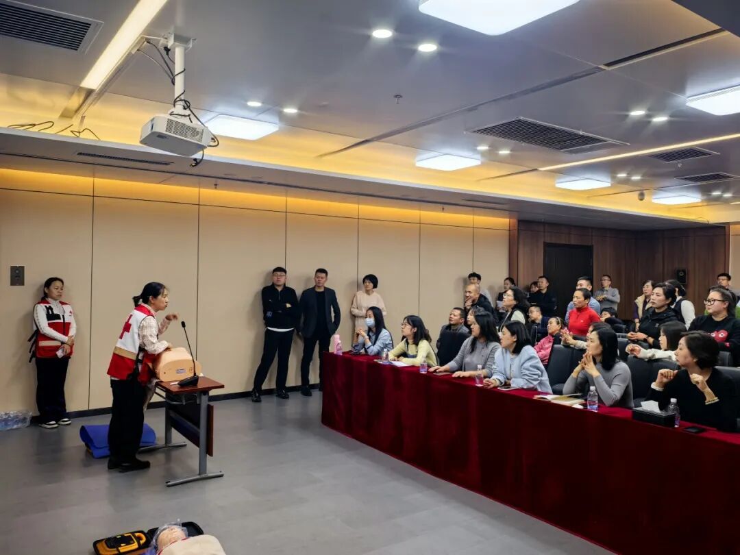 培训现场,专业讲师团队摒弃了传统理论教学的枯燥模式,以 “通俗讲解 + 实物示范” 相结合的方式,将复杂的急救操作拆解为一个个清晰易懂的步骤。针对心肺复苏关键技能中的难点问题,讲师们借助人体模型、AED自动体外除颤仪等实物教具,逐一进行手把手示范,耐心纠正职工们的操作姿势和手法。原本因涉及生命安全而略显紧张的急救学习,在讲师们生动有趣的讲解和直观的演示下,变得轻松易懂,现场学习氛围浓厚,职工们积极互动提问,主动上台实操练习,力求掌握每一个急救细节。 讲师们在传授技能的同时,始终强调 “急救能救命” 的核心理念,通过分享真实急救案例,让职工们深刻认识到掌握应急救护技能的重要性和紧迫性,引导大家将急救知识从 “课堂学习” 转化为 “主动践行” 的责任意识。参与培训的职工表示,此次培训内容实用、贴近生活,不仅学会了关键的急救技能,更感受到了 “用技能传递温暖” 的意义,未来将把所学知识运用到生活和工作中,在需要时伸出援手。