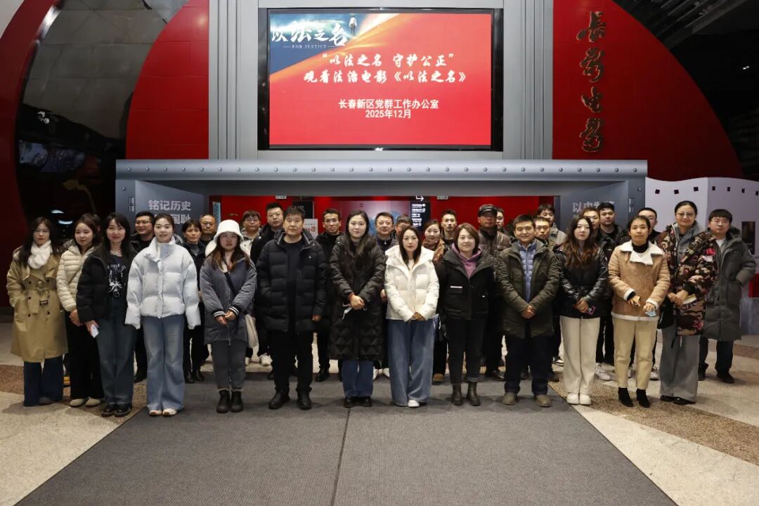 12月5日,长春新区组织机关和政法系统党员集体观看电影《以法之名》,深入学习宣传贯彻习近平法治思想,弘扬社会主义法治精神,增强机关干部的法治意识和为民服务能力,进一步彰显法律援助在维护社会公平正义、保障公民合法权益中的重要作用,引导广大党员干部在沉浸式的光影体验中,深刻感悟法治精神的力量。