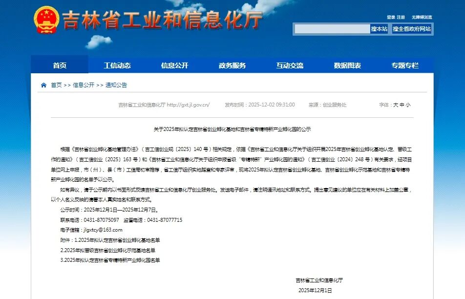 近日,吉林省工业和信息化厅公示2025年“吉林省专精特新产业孵化园”名单,长春新区长春市转业军人创业孵化基地、长春高新越达科技创新创业孵化基地被认定为“吉林省专精特新产业孵化园”。截至目前,全省共有7家“吉林省专精特新产业孵化园”,其中6家在长春新区。