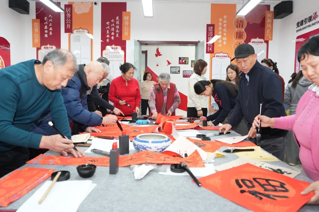 飞跃街道众恒社区的“小年挥毫送福”活动现场,墨香扑鼻。书法爱好者李振天老师带着大家写福字、写春联,不少居民也兴致勃勃提笔体验,风格各异的作品铺满桌台。现场还穿插反诈小课堂,提醒大家守好“钱袋子”。一位阿姨笑着说:“这活动太有年味了,红红火火真喜庆!”兴华社区、永达社区、超强社区、卓越社区等也纷纷铺纸研墨,把一张张“福”和一副副春联,送到居民手中。