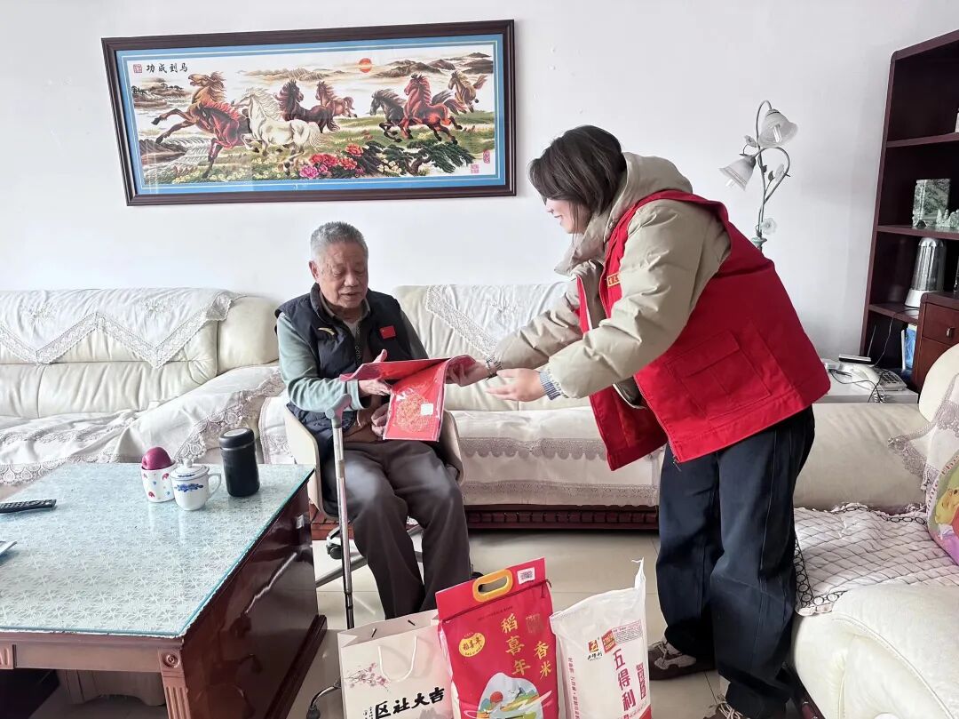 除了送福字,各社区还悄悄准备着一波“暖心礼”,富康社区志愿者亲手包饺子、写对联,还为困难群众送上豆油、洗衣液;中盛社区创意美术公益课堂让宝贝们用画笔描绘童真与梦想;湖光社区联动爱心企业,发放200袋爱心面粉;吉大社区走访高龄、独居老人,边聊家常边讲政策;隆北社区为30多户弱势群体送上米、面和春联;之悦社区则带着满满的心意看望捐献造血干细跑的年轻党员;富强社区关爱新就业群体,为外卖骑手送上手套和面包,“暖手又暖胃”。