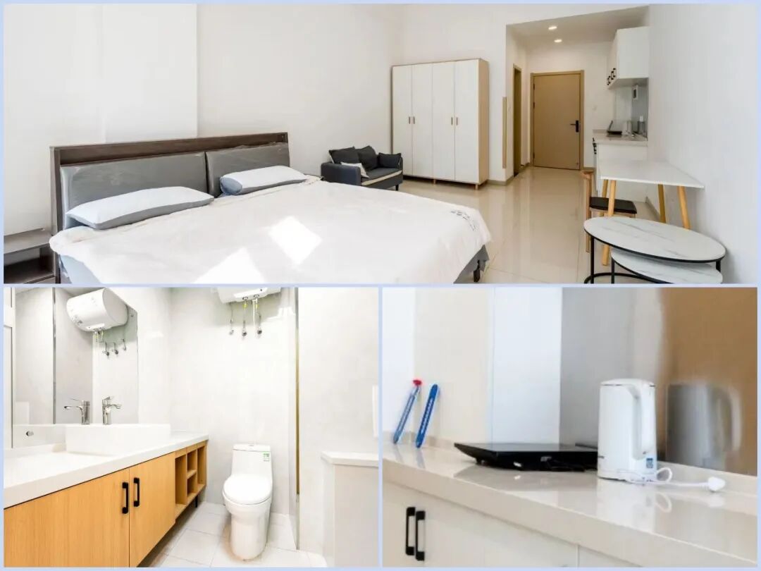 城寓・创新家打造了524套48-55㎡舒居空间,全部精装交付,每一间公寓都精心规划休憩与轻办公空间,床、衣柜、书桌等家私一站式配齐,独立卫浴是标配,洗漱台、淋浴区、全套洁具一应俱全,干净私密又卫生,满满的幸福感藏在每一处细节里。电视、热水器、电磁炉、烧水壶等生活家电全方位配齐,从日常起居到三餐烟火,拎包就能开启精致生活。