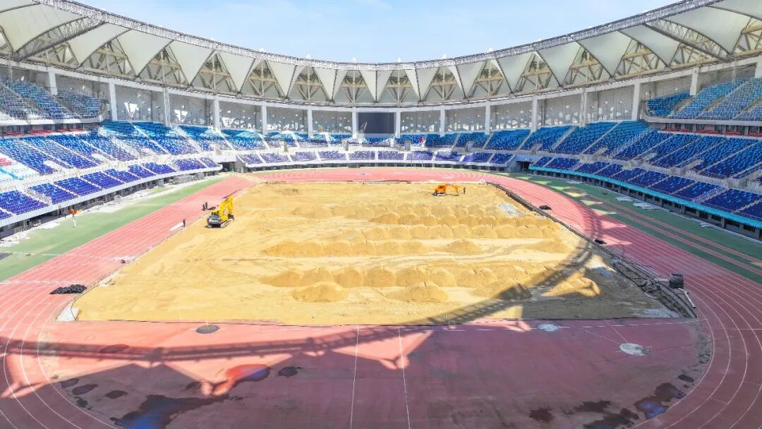 “我们从3月中旬开始进场施工,土方清运、喷灌主管道铺设等工作有序推进,同步拆除功能用房老旧管线、卫浴设施,目前工程已全面进入施工阶段。”长春奥体公园体育场提升改造工程相关负责人表示,施工单位将通过多工种并行作业,关键工序两班倒,夜间组织室内工程等举措,确保整体工程在5月10日前全部完工。