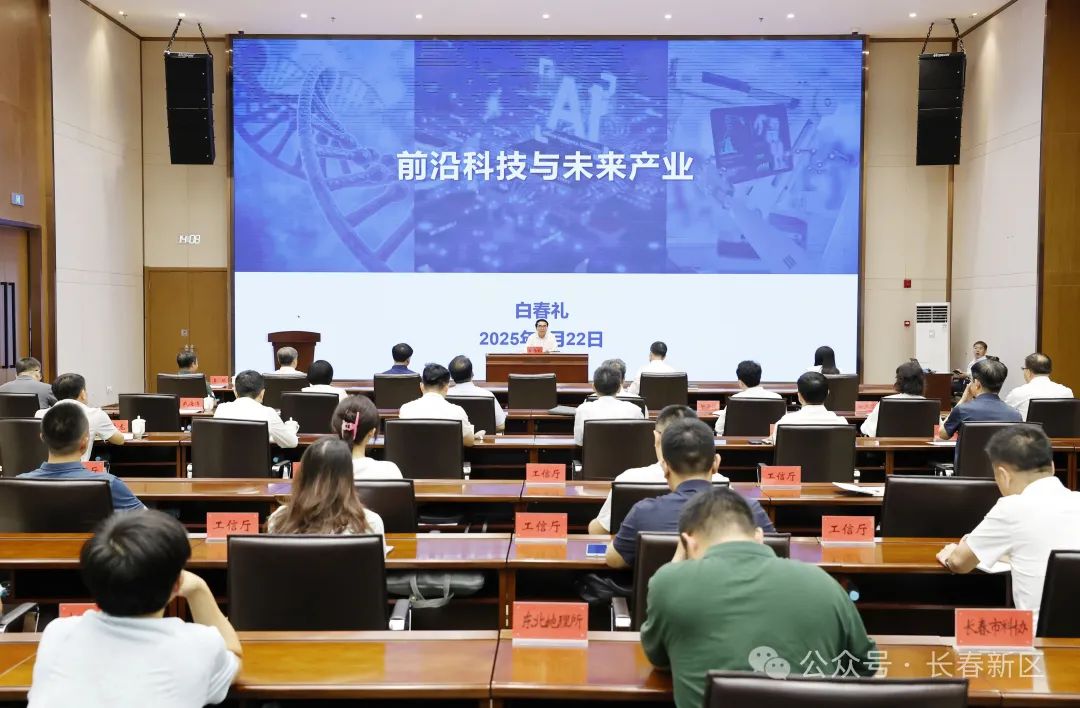 8月22日,由吉林省科协、长春新区主办的前沿科技和未来产业院士报告会在长春新区举行,中国科学院院士白春礼应邀作题为《前沿科技与未来产业》的专题报告,深入贯彻习近平总书记关于科技创新的重要论述和在听取吉林省委和省政府工作汇报时的重要讲话精神,通过高端学术交流助力地方经济发展,服务建设具有吉林特色的现代化产业体系。中国科学院院士、吉林大学校长张希,省科协党组书记、副主席陈耀辉出席活动。长春市委副书记、长春新区党工委书记闻然主持报告会。长春新区党工委副书记、管委会主任徐勇,长春理工大学党委副书记、校长郝群,中科院东北地理所所长姜明出席活动。