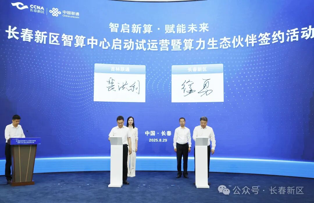 启动仪式上,长春新区管委会与中国联通吉林省分公司签订深化战略合作协议,长春新区管委会、中国联通吉林省分公司共同与吉林省工研院、长春市数据创新应用研究院、吉大人工智能学院、长光卫星、一汽通信、浪潮信息、新华三等27个算力生态伙伴签订三方协议,通过“政府引导、央企运营、生态联动”模式,促进算力服务与实体经济深度融合,打造区域算力节点新标杆。