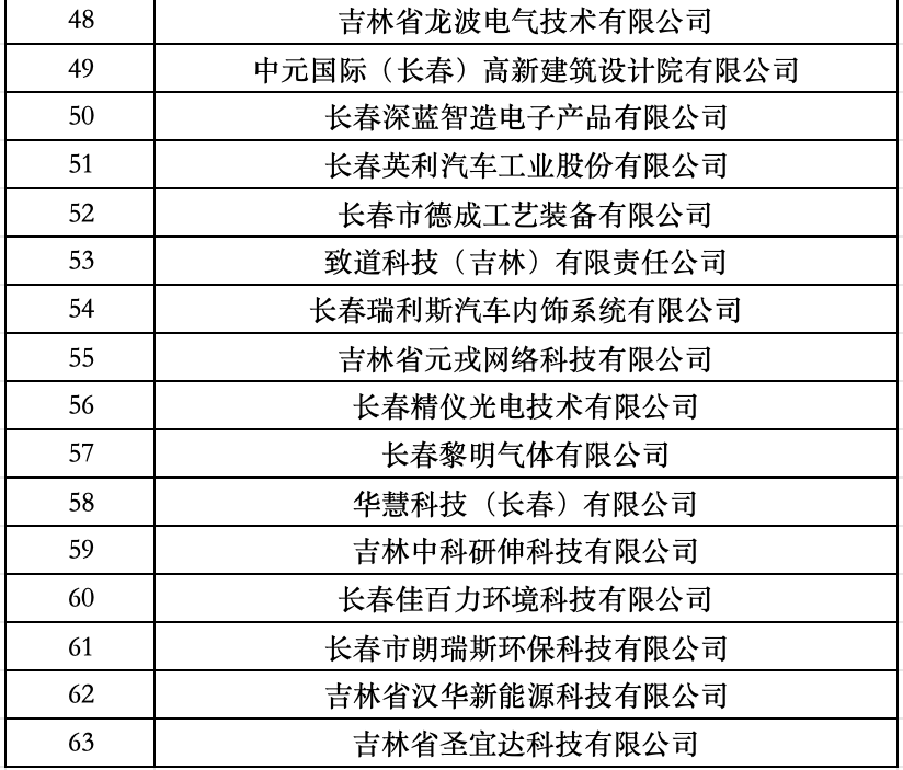 长春新区名单