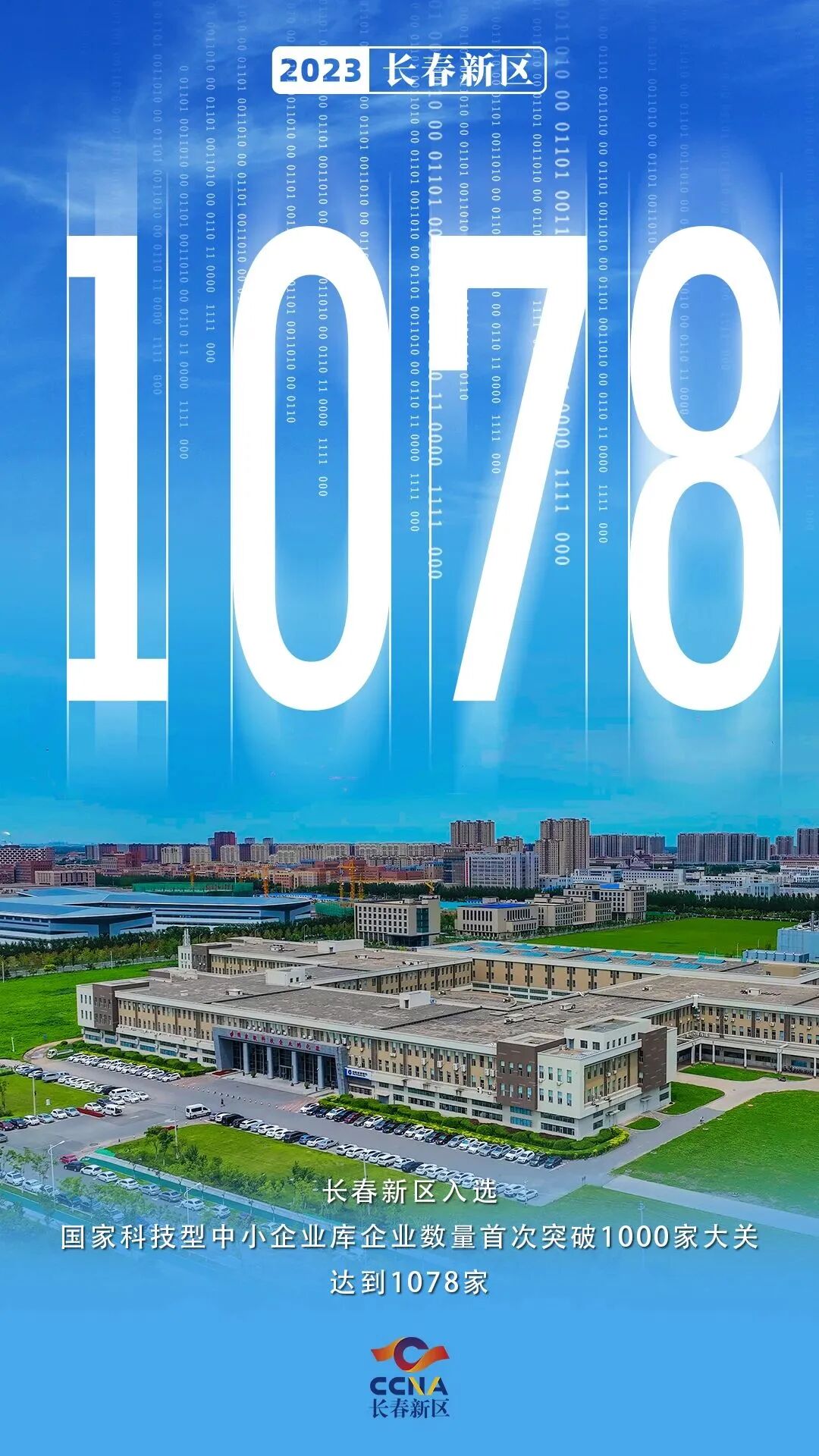2023年,长春新区入选国家科技型中小企业库企业数量首次突破1000家大关,达到1078家;