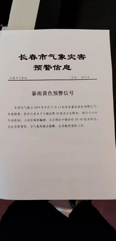 暴雨黄色预警