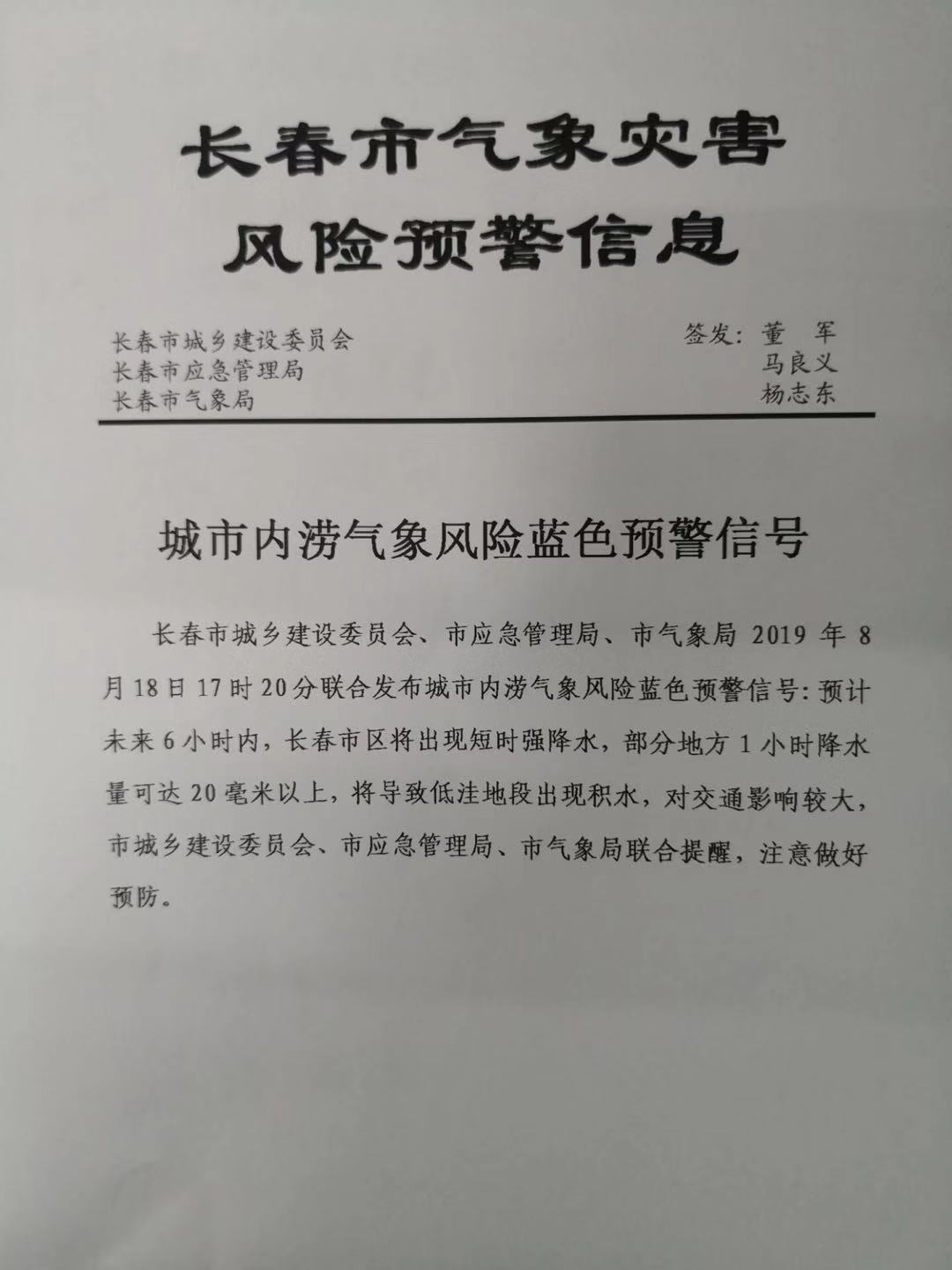 城市内涝气象风险蓝色预警信号