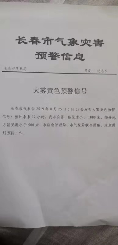 大雾黄色预警