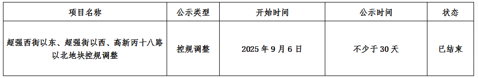 超强西街以东、超强街以西、高新丙十八路以北地块控规调整公示