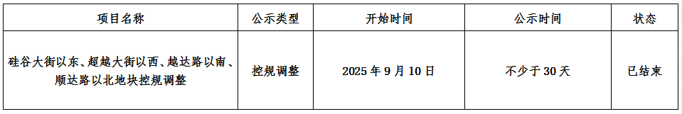 硅谷大街以东、超越大街以西、越达路以南、顺达路以北地块控规调整公示