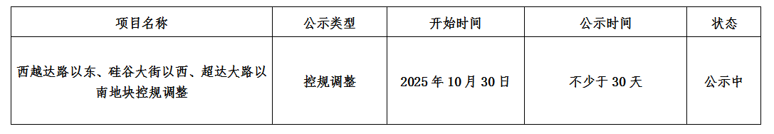 西越达路以东、硅谷大街以西、超达大路以南地块控规调整