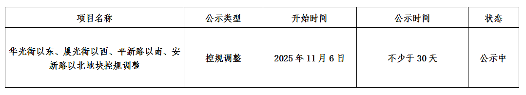 华光街以东、晨光街以西、平新路以南、安新路以北地块控规调整公示