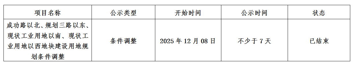 成功路以北、规划三路以东、现状工业用地以南、现状工业用地以西地块建设用地规划条件调整