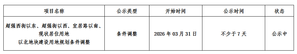 超强西街以东、超强街以西、宜居路以南、现状居住用地以北地块建设用地规划条件调整公示