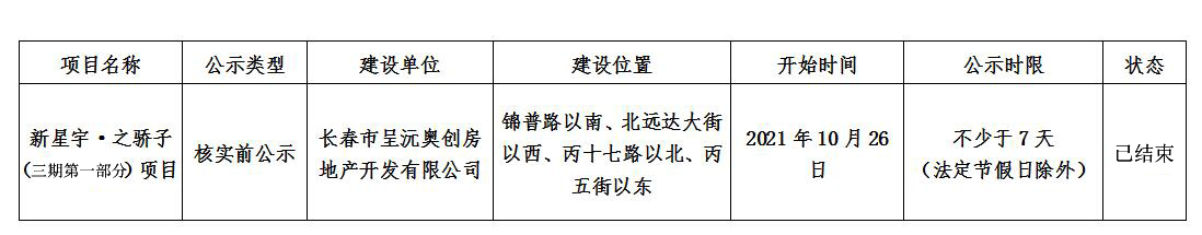 新星宇·之娇子(三期第一部分)项目核实前公示