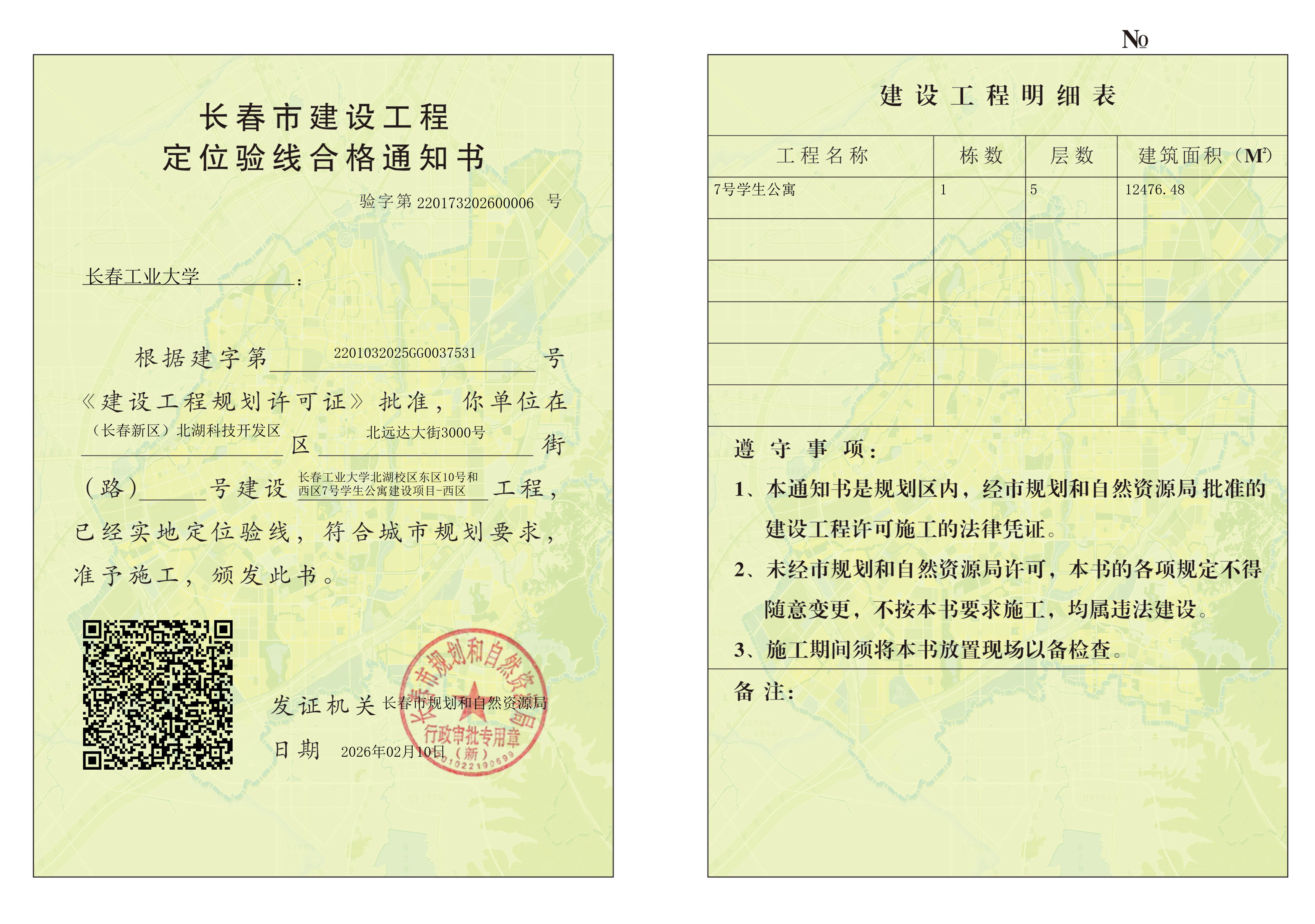 长春工业大学北湖校区东区10号和西区7号学生公寓建设项目一西区批后公告