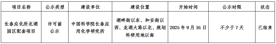 长春应化所北湖园区配套项目行政审批批前公示