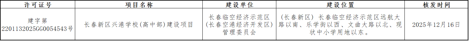 长春新区兴港学校(高中部)建设项目行政审批批前公示
