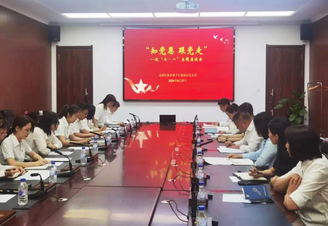 高新区教育和卫生健康局党支部组织召开“知党恩 跟党走”主题宣传会。党支部书记夏元柱做了《学纪知纪明纪守纪 推动党纪学习教育务实开展》主题党课。与会党员、积极分子共同回顾了党百年辉煌历程所取得的伟大成就,表达了对党无限的热爱之情,同时,结合工作实际,畅谈初心使命、分享学习感悟、展望奋斗目标,纷纷表示将树牢理想信念,筑牢政治忠诚,强化理论武装,用青春书写为民情怀,以行动诠释责任担当,努力为新时代高新区高质量发展贡献自己的青春力量。