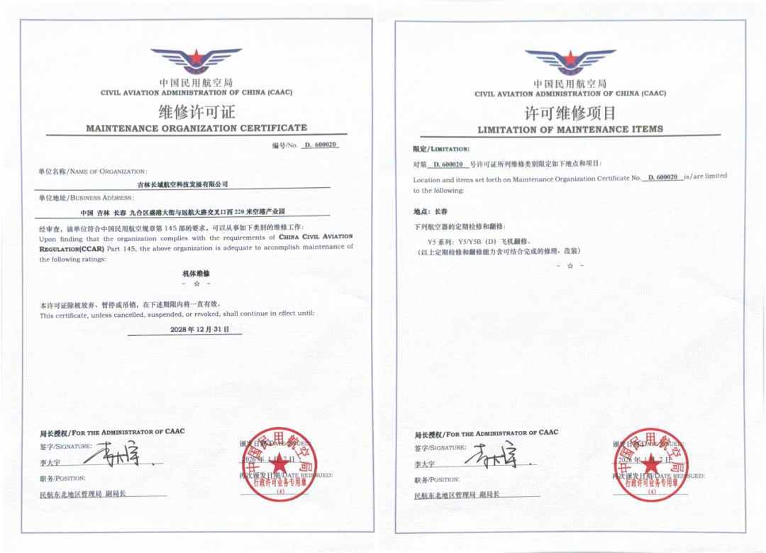 近日,长春新区临空经济示范区传来重磅喜讯,区内企业吉林长域航空科技发展有限公司成功获得中国民用航空东北地区管理局颁发的CCAR-145部维修许可证。这一核心资质的落地,不仅填补了吉林省民用航空器维修资质领域的空白,更使长春临空经济示范区在航空维修产业布局上实现关键突破,为区域打造东北低空经济中心注入强劲动力。