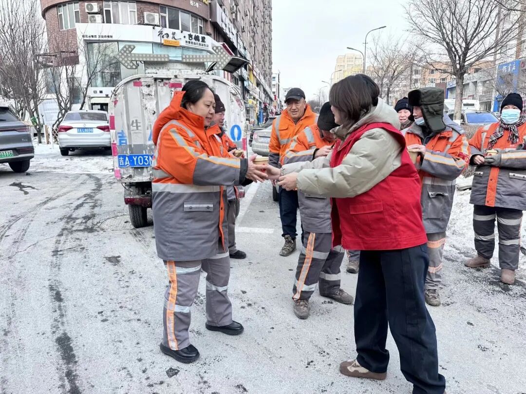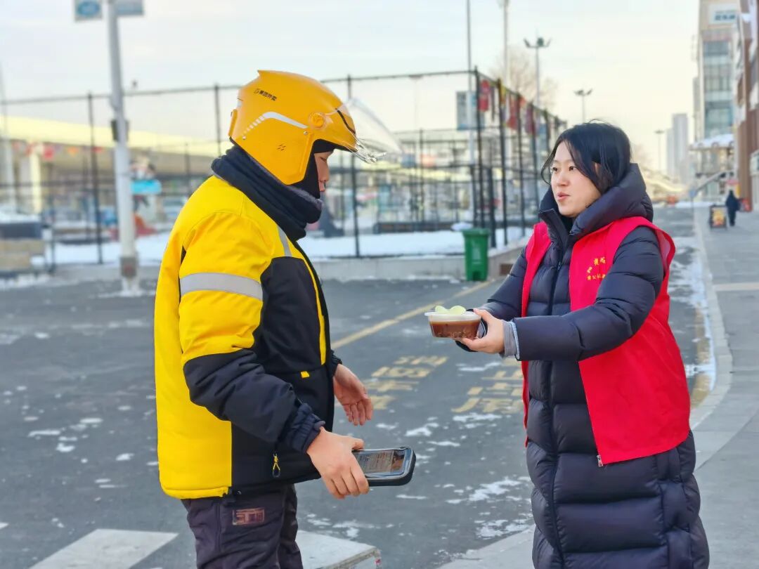 1月26日,在腊八节之际,长春高新区两新党委携手富裕社区、阳光社区、睿智社区和吉大社区联合开展“暖粥映初心 情系赶路人”腊八送温暖主题活动,为辖区新就业群体送上热气腾腾的腊八粥及节日祝福,把党组织的暖心关怀和城市的温情暖意送到劳动者身边。