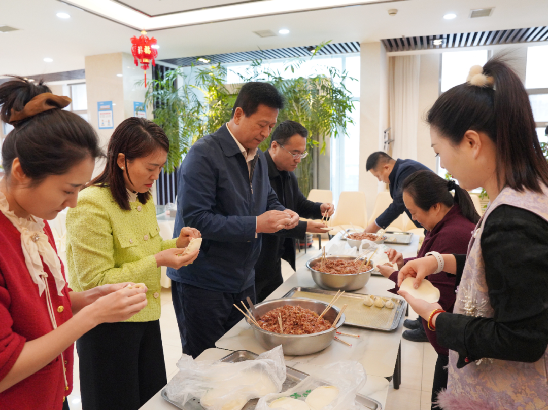 食堂之内年味浓,包饺子里聚人心。红灯笼高挂、福字相映成趣,干部职工自发分工协作,和面、擀皮、调馅、捏褶,动作娴熟、配合默契。大家一边切磋包饺子技巧,一边分享家常趣事,手指翻飞间,圆润饱满的传统水饺、精致小巧的月牙水饺摆满托盘,欢声笑语不断,每个人脸上都洋溢着幸福与喜悦。