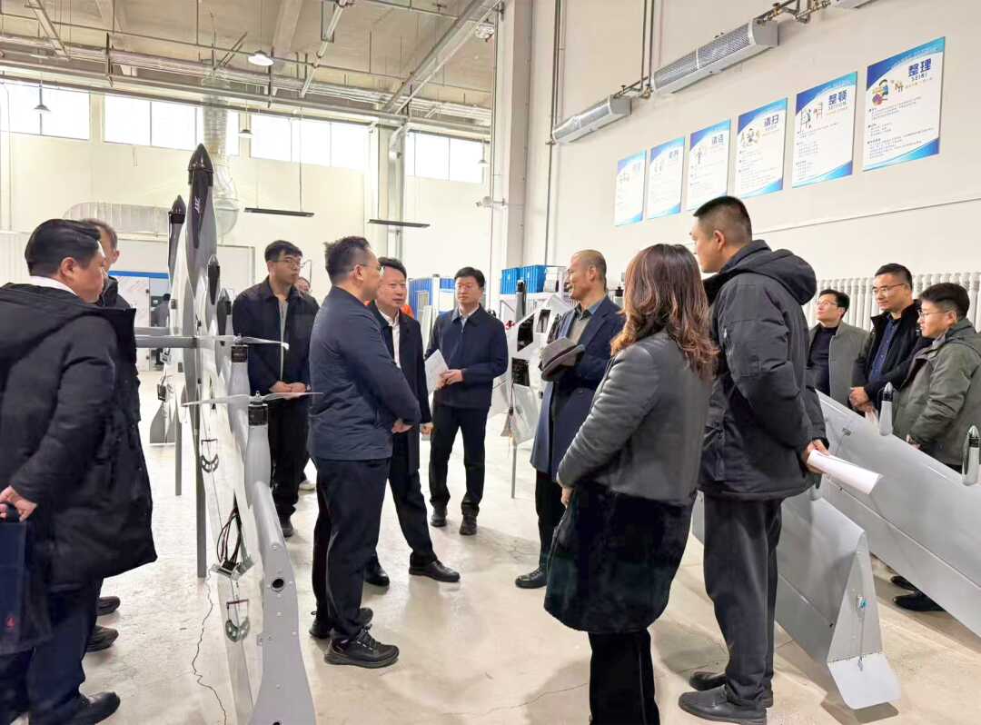 会前,与会人员来到长光博翔无人机公司,实地参观了企业研发生产基地,近距离观摩全球独创的双飞翼垂直起降固定翼无人机系列产品。白越总经理介绍了其在智能载荷矩阵、气动布局、续航载重等方面的颠覆性技术优势以及在应急救援、电力巡检、地理测绘等领域的实战应用成果。