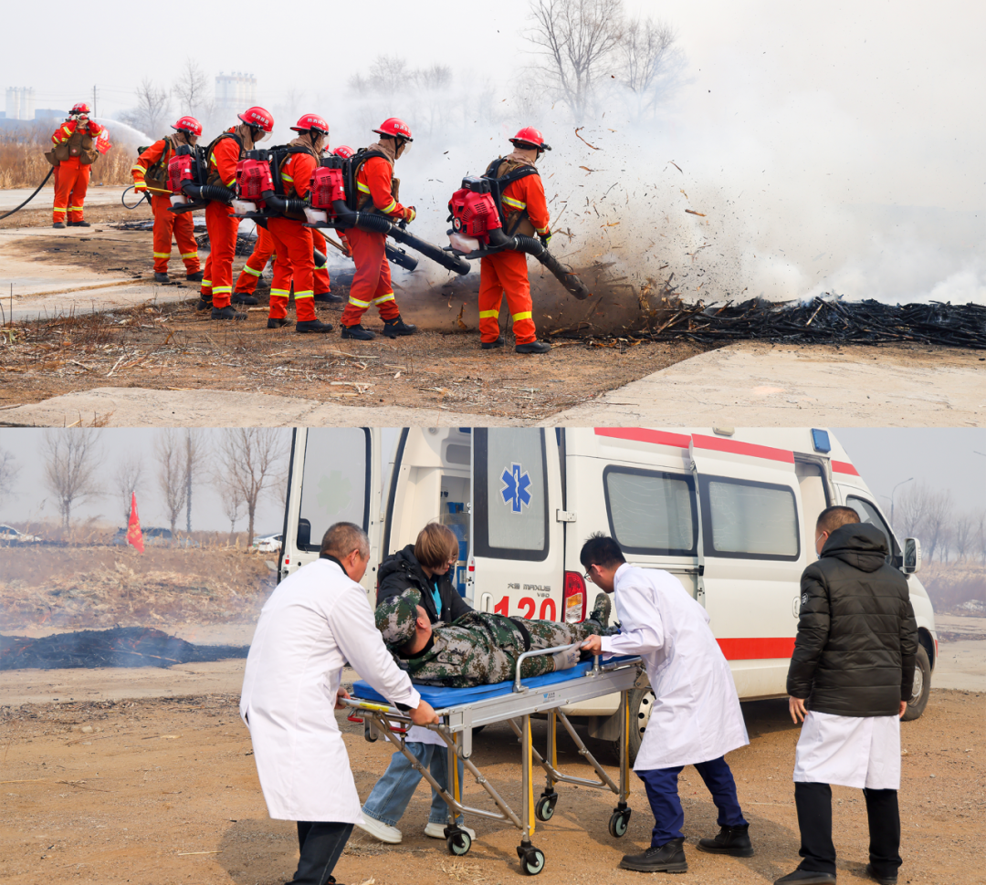 本次演练,模拟荒地因秸秆烧除引发森林火险场景,全流程还原火情发现、上报、处置、医疗救援、专业增援、火点扑灭及现场看守等应急处置环节。演练中,村级扑火队率先开展初期处置,医疗救护组及时完成受伤人员救治转移;因风力较大火势蔓延形成地表火,临空示范区应急综合救援队紧急增援,经火情勘察后采取“火尾单点突破+以水灭火压制火头”战术,运用专业装备高效扑灭火情,各环节衔接紧凑、指挥有序、处置规范。