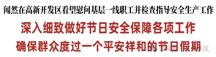 调研中,闻然强调,越是节日期间,各开发区和新区各部门越要保持如履薄冰、如临深渊的警醒,以严细实作风抓实抓细抓好各项工作,坚决维护社会大局安全稳定。要加强应急值班值守,严格执行24小时值班和领导带班制度,确保信息畅通,遇有突发事件快速有效处置。要紧盯人员密集场所、重点领域、重点行业,排查风险隐患,牢牢守住安全底线,确保群众度过一个平安欢乐祥和的国庆、中秋假期。