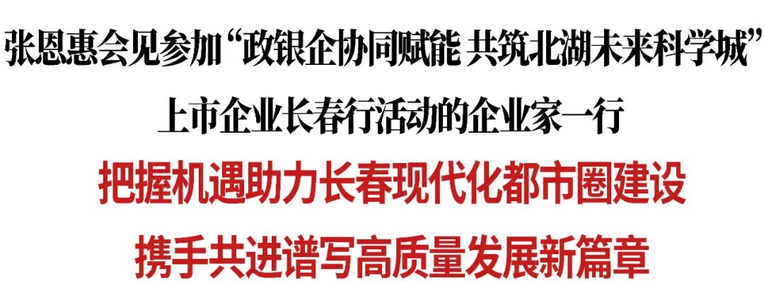 11月14日,市委书记张恩惠会见了参加“政银企协同赋能 共筑北湖未来科学城”上市企业长春行活动的企业家一行。