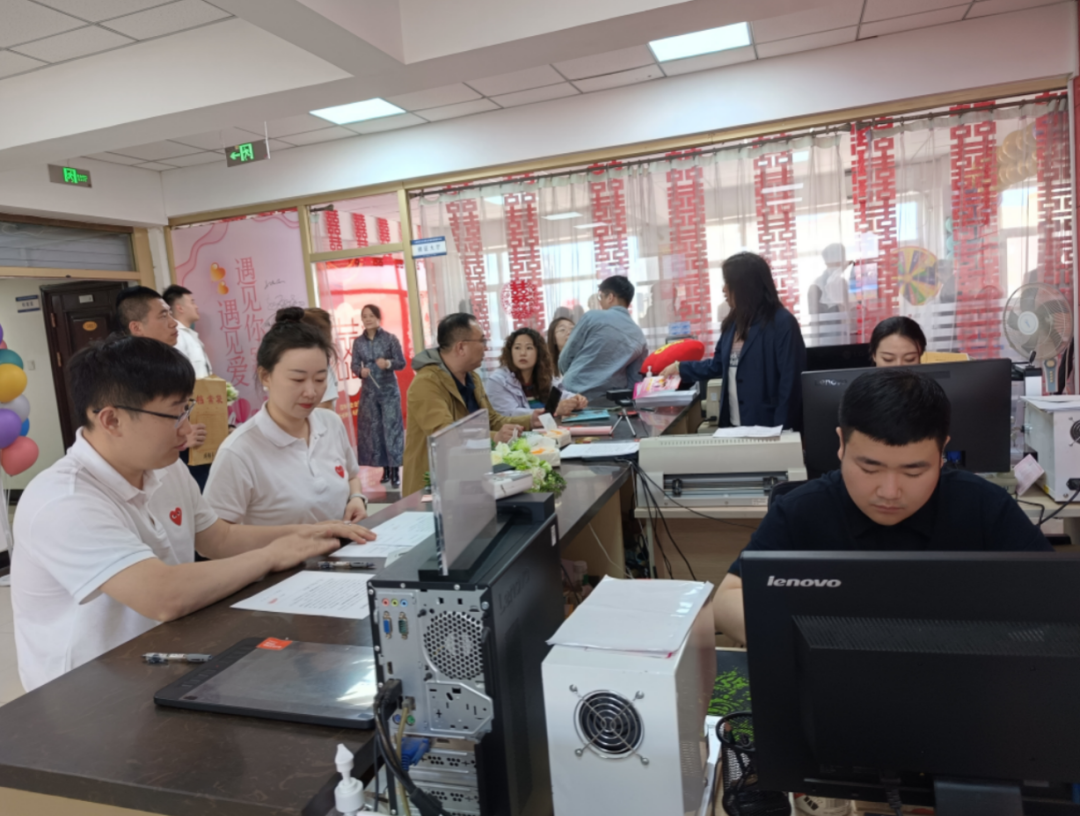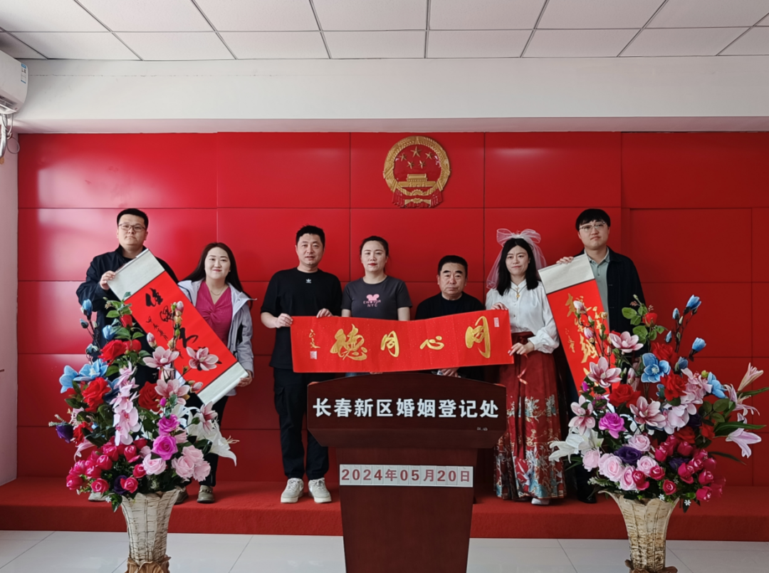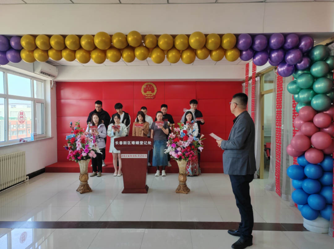 五月,繁花似锦,绿荫如海,在这个充满生机与希望的季节里,由长春新区社会事业局婚姻登记处主办的“情定520 遇见你 遇见爱”为主题的集体颁证活动,在长春新区婚姻登记处浪漫开启。