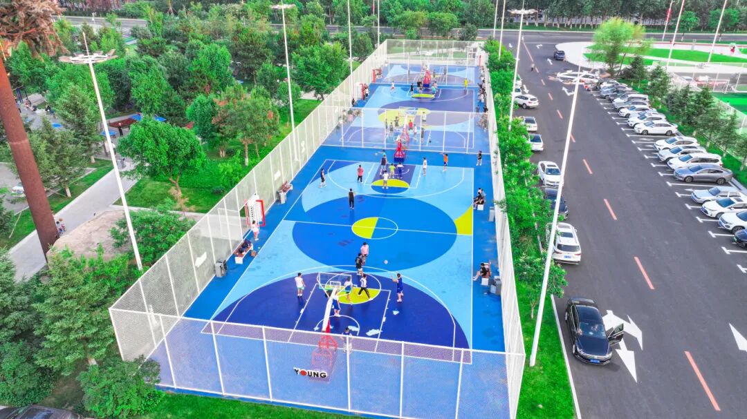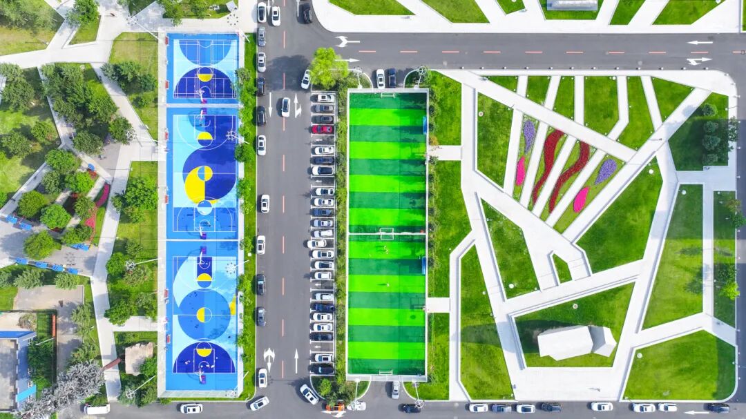 运动达人在球场上火热比拼,小朋友们在草地上欢快地玩耍,老人则骑健身单车、跳广场舞,一幅活力无限的城市运动场景图在城市运动空间中次第展开。