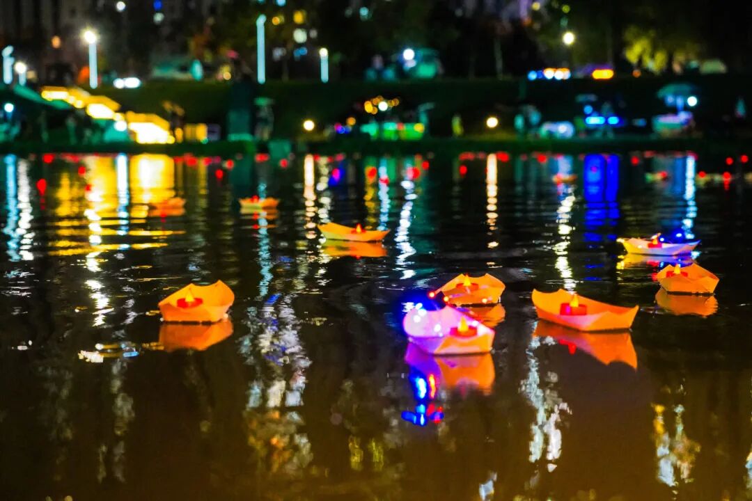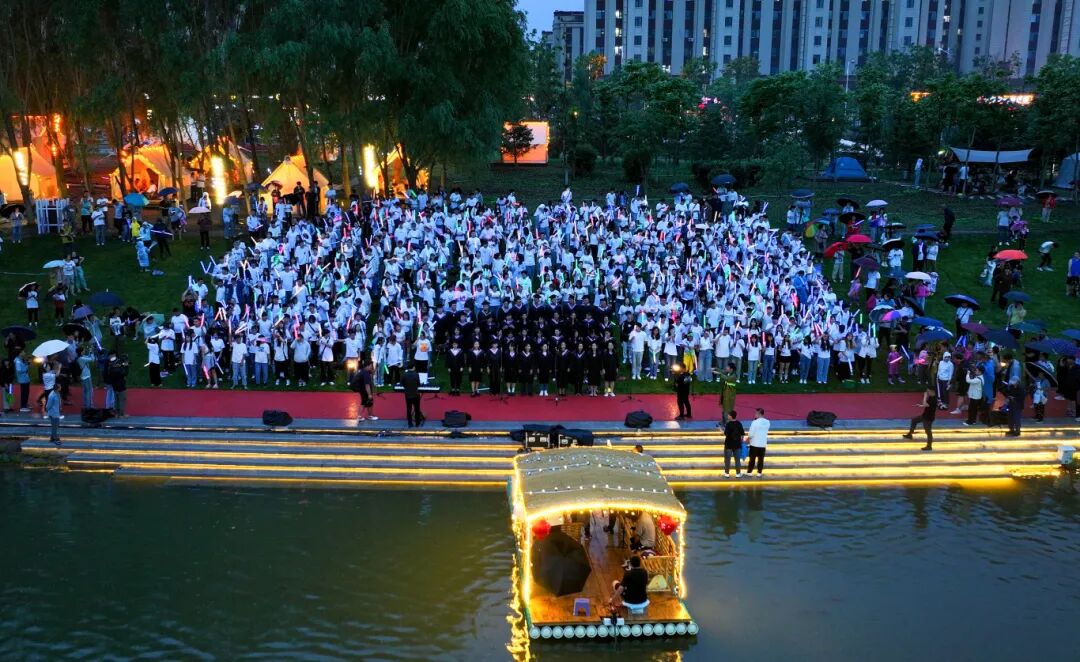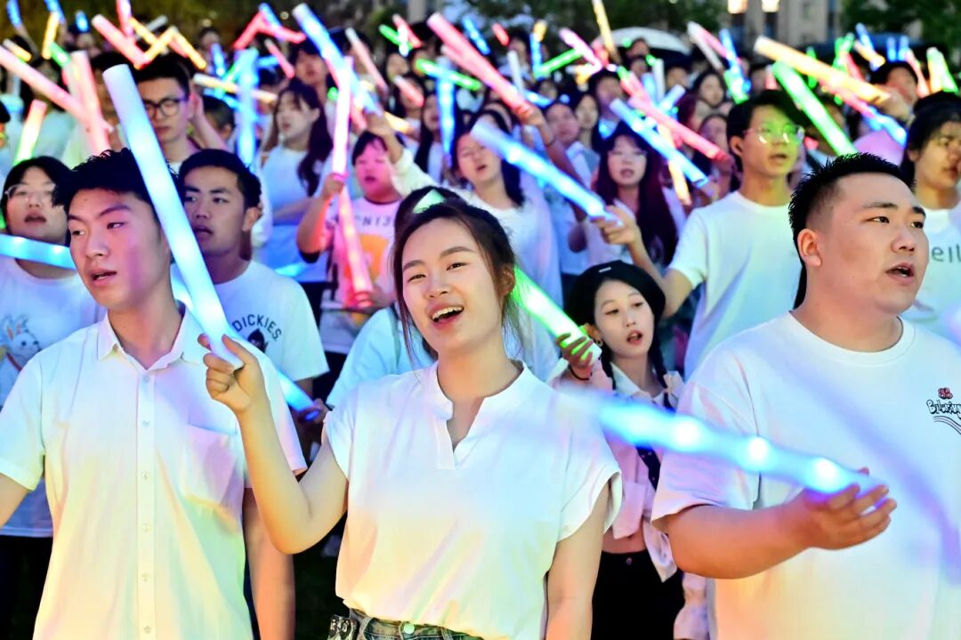 活动现场还有近千名来自长春工业大学、长春大学、长春人文学院等多所高校学生,大家身着白色T恤和牛仔裤一同欢唱,无数荧光棒闪亮挥舞,3000余个花船河灯随溪投放,点亮梦想。大家在夏天遇见,也在夏天告别,一起奔赴下一场山海!