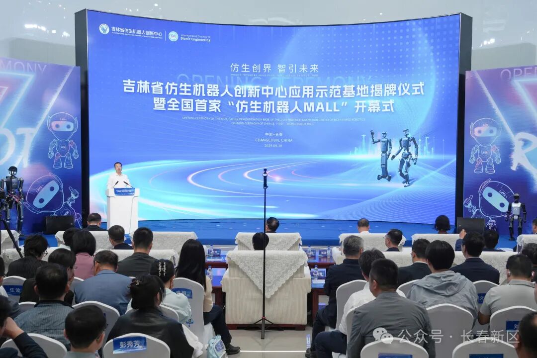 9月30日,吉林省仿生机器人创新中心应用示范基地揭牌暨全国首家“仿生机器人MALL”开幕活动在长春新区举行,推动仿生机器人技术从核心研发到商业转化的全链条落地,加快打造全国首个“人工智能+”机器人产业多生态融合样板,助力长春振兴突破、塑造未来产业新高地。中国科学院院士、吉林大学教授任露泉,长春市委副书记、长春新区党工委书记闻然,吉林大学副校长张国兴出席活动并讲话。长春新区党工委副书记、管委会主任徐勇主持活动。