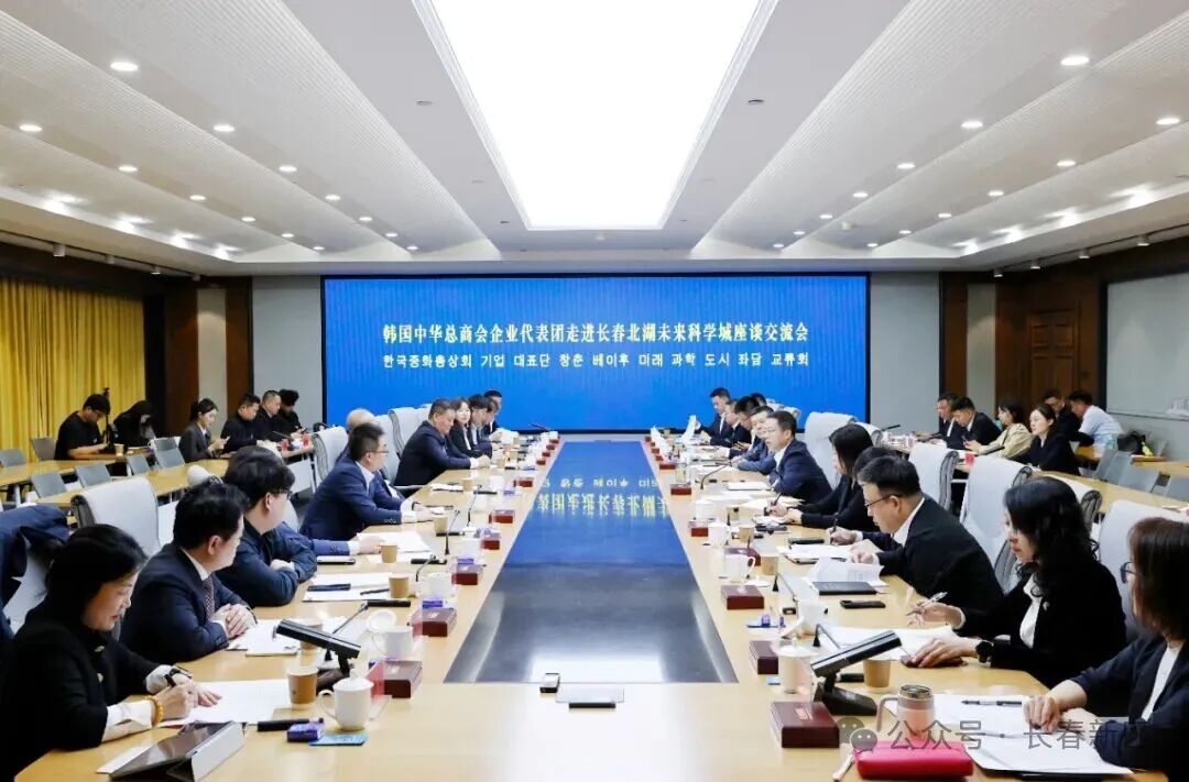 座谈会上,与会嘉宾共同观看了长春新区、中韩示范区宣传片,听取了长春市对韩合作、北湖未来科学城建设相关情况。韩国中华总商会企业代表围绕产业合作相关事宜进行发言。