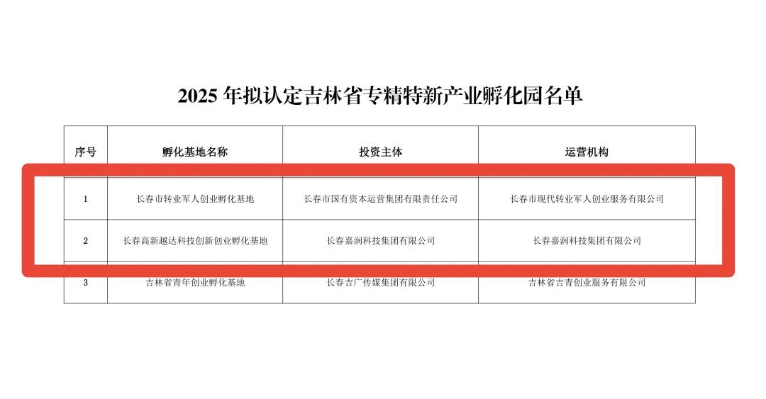 近日,吉林省工业和信息化厅公示2025年“吉林省专精特新产业孵化园”名单,长春新区长春市转业军人创业孵化基地、长春高新越达科技创新创业孵化基地被认定为“吉林省专精特新产业孵化园”。截至目前,全省共有7家“吉林省专精特新产业孵化园”,其中6家在长春新区。