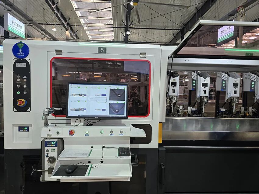 线束车间内,一台台全自动插接机高速运转,精密伺服驱动机构发出有节奏的律动。自动化作业员谭冬娜熟练地操作着设备。她身旁这台组合型线束多头端子插接机,是公司与供应商合作研发的“智造”利器。