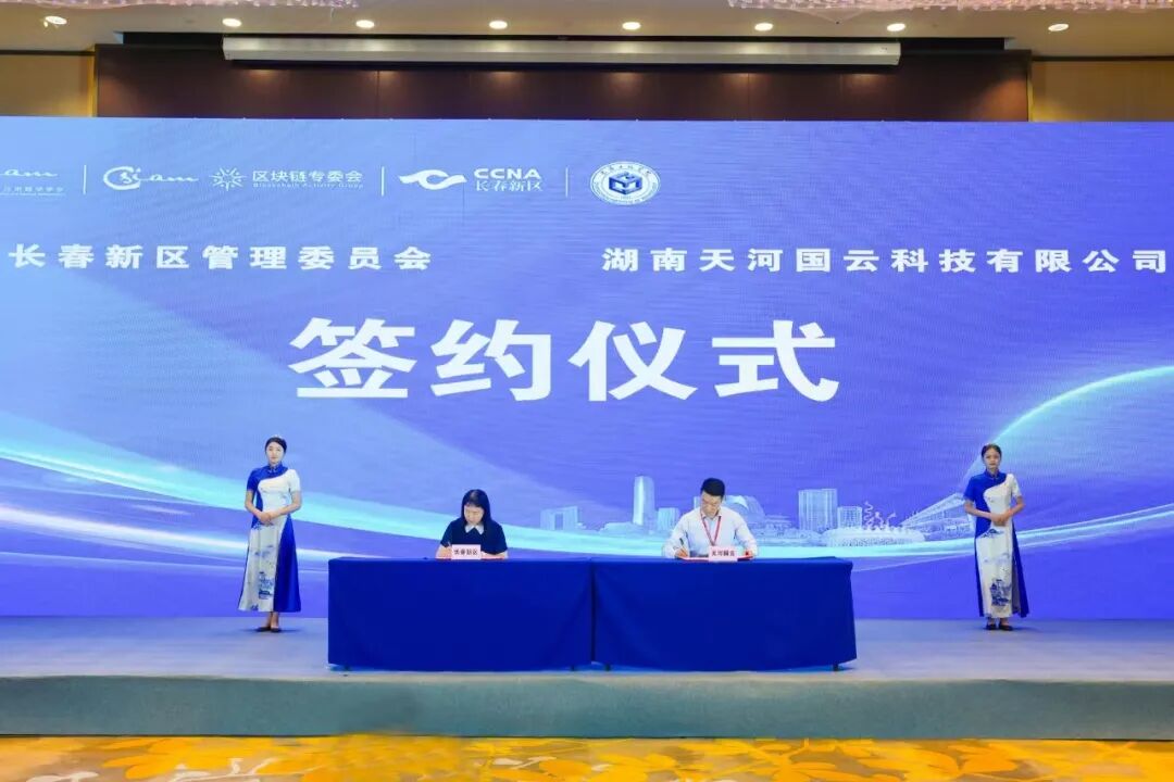 唐继东代表长春新区与国内区块链先锋企业—湖南天河国云科技有限公司签署合作协议,双方将在促进数据共享、提升服务效率、保障网络安全等方面,建立全面的区块链技术合作关系,推动区块链技术在长春新区的落地应用。