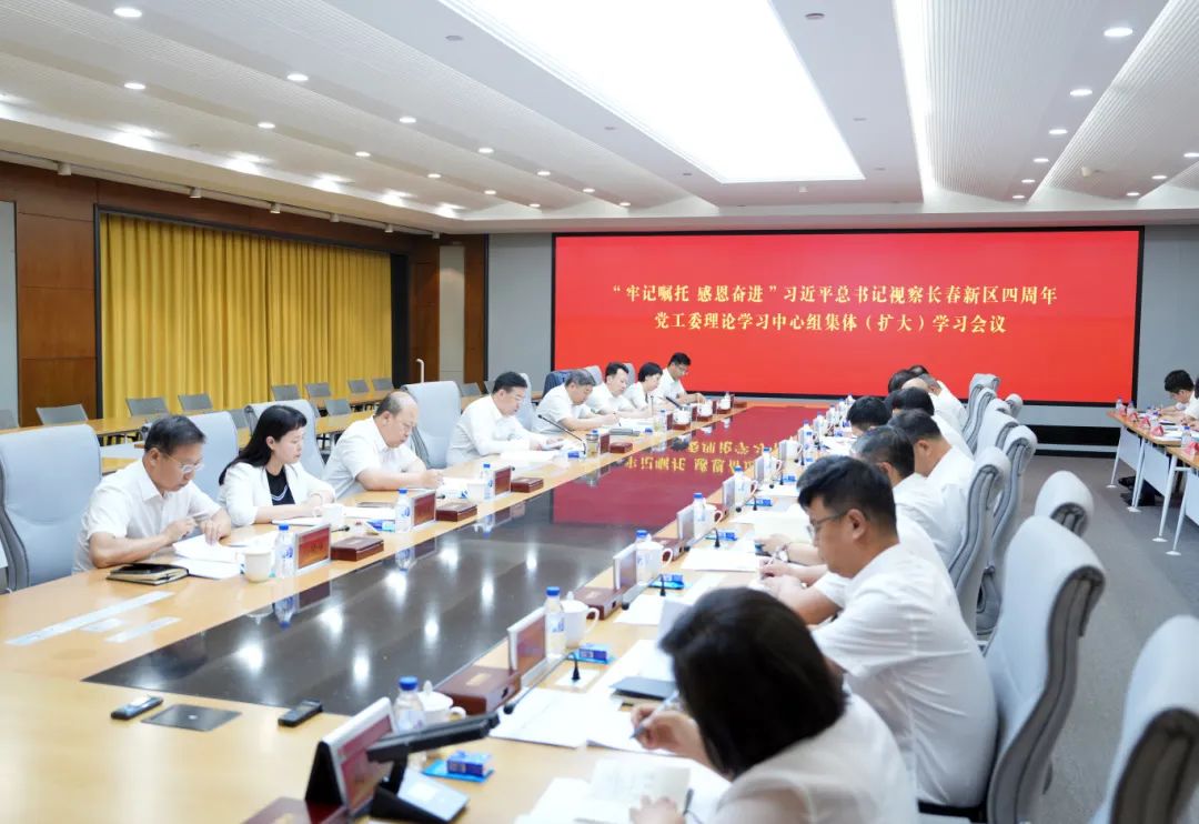 在习近平总书记视察吉林四周年之际,7月23日,“牢记嘱托 感恩奋进”习近平总书记视察长春新区四周年党工委理论学习中心组集体(扩大)学习会议召开,结合学习贯彻党的二十届三中全会精神,对照习近平总书记视察吉林重要讲话重要指示精神,进一步对标对表、检视差距、提升工作,不折不扣推动习近平总书记重要讲话重要指示精神在新区落地生根、见行见效。长春市副市长朱光明,长春新区管委会主任徐勇,长春新区党工委副书记李广明参加活动。
