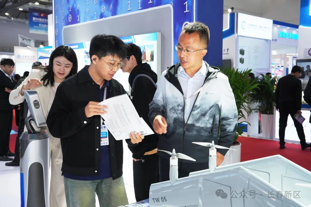 走进长春新区展区,更多国际领先、国际先进和填补国内空白的核心产品及技术,让市民和客商应接不暇。长光博翔无人机有限公司专为教培行业研发的双飞翼TW05;吉林东超科技有限公司可交互空中成像互动屏、展示机、学习桌;中科稀土(长春)有限责任公司护眼灯;长春市东佳科技有限公司AI尚视界查训一体化平台、倍视得读写平台、远距光屏;长光卫星技术股份有限公司“吉林1号”卫星模型;吉林省吉创科豹科技有限公司机械臂、机器人、无人机;长春禹衡光学有限公司编码器、光栅尺、反射式棱镜单色仪;长春市麦迪克智行汽车科技有限公司汽车自动轮角模块;艾仁医药科技有限公司外骨骼式康复机器人;长春信息技术职业学院动漫建模、VR头盔……
